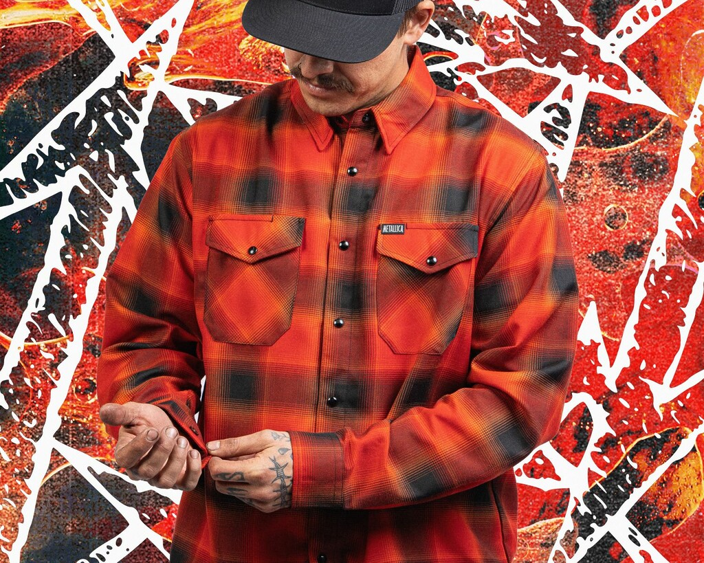 Dixxon’s red-and-black flannel features details that reference Metallica’s history.